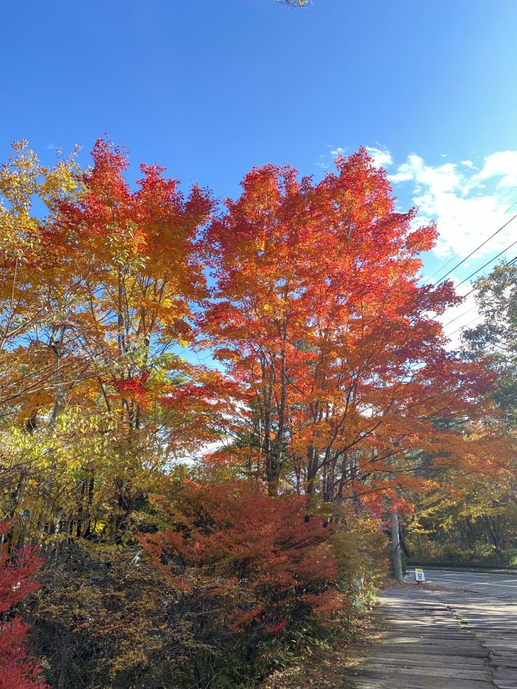 今年は特に、真っ赤に染まるカエデや黄色やオレンジに輝くナラ、カラマツの黄金色のグラデーションが見事で、散歩するたびに心が洗われるようです。